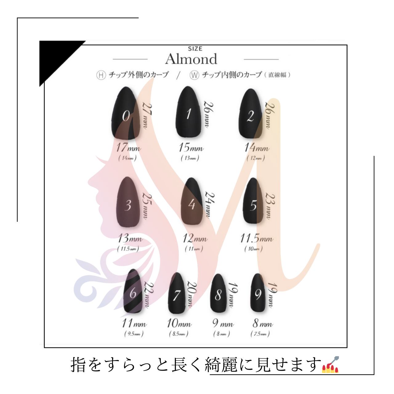 ■ネイルチップのサイズはサイズ表をもとにご自身でご確認の上、ご記入をお願いいたします。