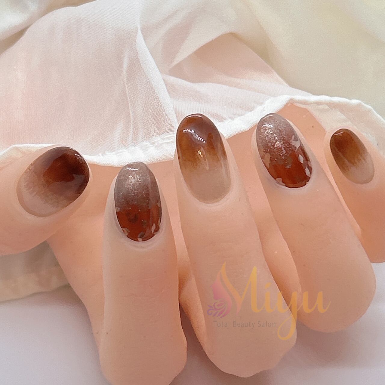 マグネットを使ったグラデーションネイルは、特別な日のための洗練された選択肢となります。このネイルデザインは、微細な磁性粒子を含んだ専用のジェルで、マグネットを使って美しいグラデーション効果を引き出します。深みと立体感が加わったおしゃれな指先は、見る人の目を引きつけること間違いなしです。さらに、ヒョウ柄のミラーパウダーを取り入れることで、ユニークで洗練された雰囲気をプラス。ミラーパウダーが放つメタリックな輝きと、ヒョウ柄のワイルドな要素を上品に融合させたデザインは、都会的でありながらカジュアルなスタイルにも調和します。特に秋冬のファッションにぴったりな、このネイルスタイルであなたの個性を表現してみてください。